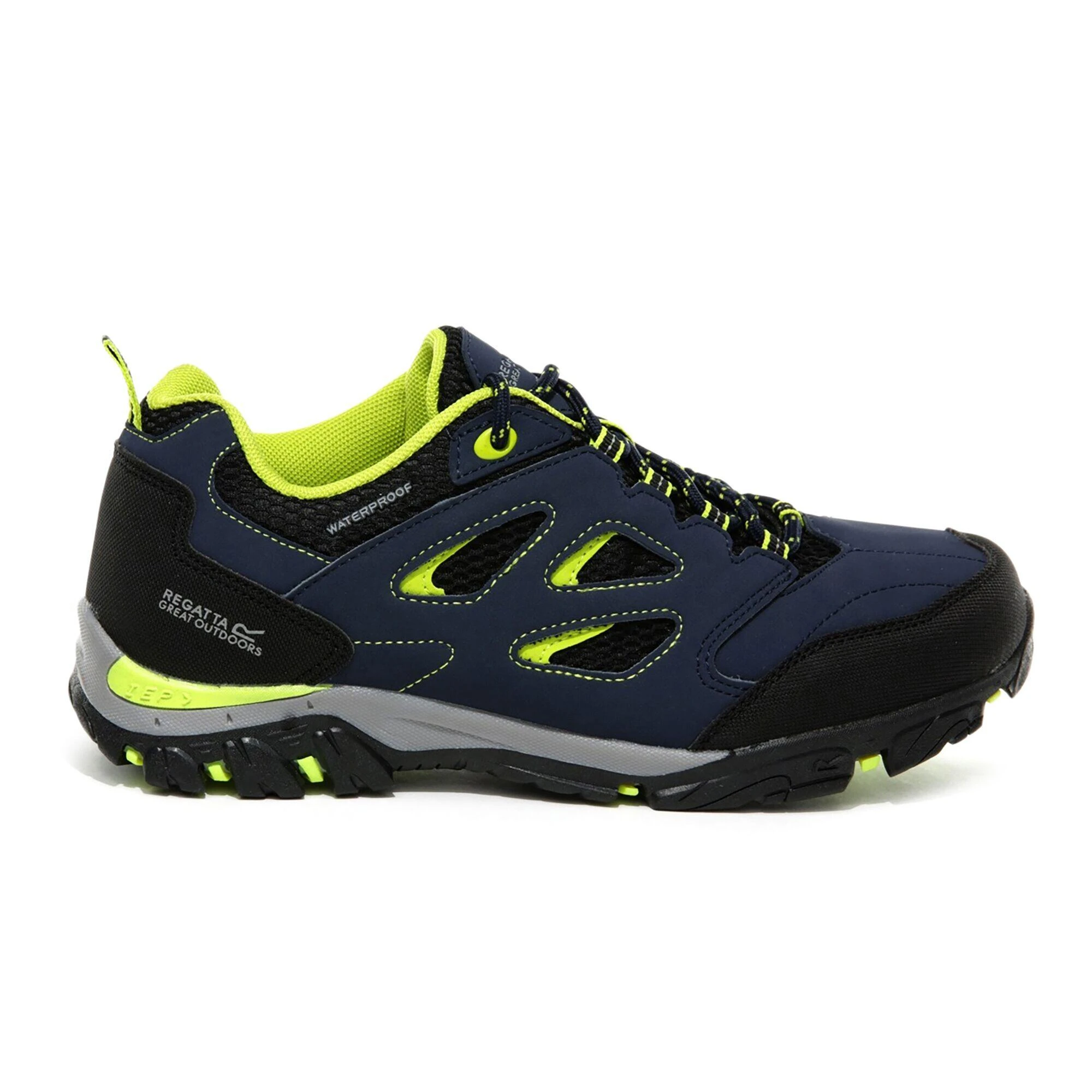 Get them ready for the outdoors with the Holcombe walking shoes from Regatta. The kids’ walking shoes have rubberised toe and heel bumpers to protect against knocks and bumps. The soft footbed cushions from impact. The sturdy rubber outsole provides reliable grip on loose paths and muddy banks. The shoes are ideal for woodland adventures with family and friends.